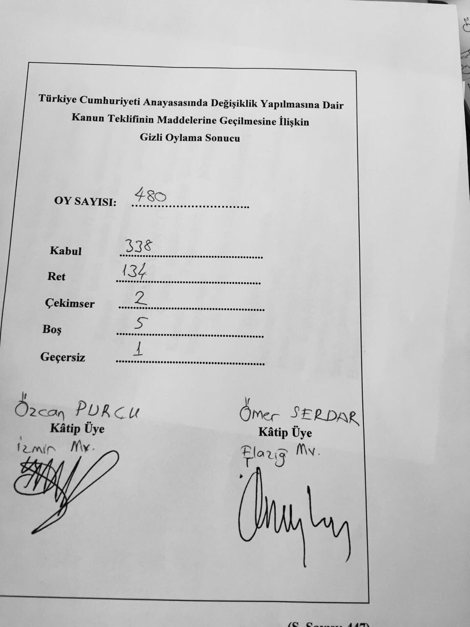 Mustafa Balbay, an MP with the CHP MP, pointed out in a tweet that those voting in favour were markedly fewer than the number of AK Party and MHP MPs (355, minus the speaker).